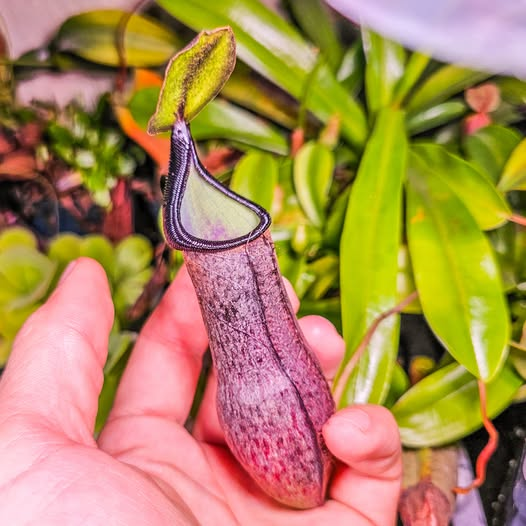 N. adnata: especie de Sumatra, rara en cultivo, aporta jarros estrechos y una estética única.